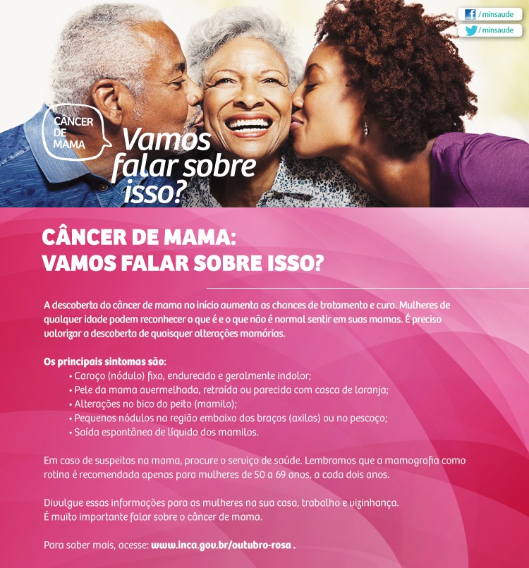 Cerca de 30% dos casos de câncer de mama podem ser evitados com a adoção de hábitos saudáveis como: Praticar atividade física regularmente; Alimentar-se de forma saudável; Manter o peso