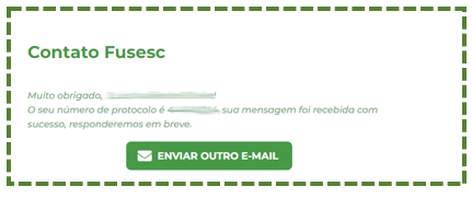 Pronto! Você receberá a mensagem com o número do protocolo de atendimento e a Entidade retornará o contato através do seu e-mail informado: