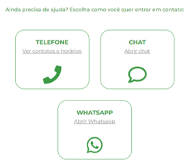 Pelo ícone de carta também é possível selecionar os demais canais de atendimento: