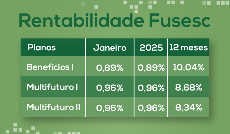 Além das Lâminas de Rentabilidade completas de cada Plano, você também pode conferir mensalmente no nosso podcast Fala Fusesc informações a respeito da rentabilidade dos planos, falando sobre os impactos