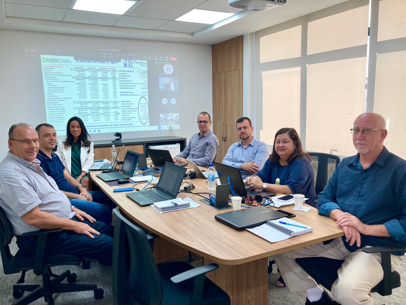 O Conselho Fiscal da Fusesc realizou sua reunião mensal com participação da equipe Fusesc na manhã de sexta-feira, dia 17/03. Participaram do encontro Luiz Aurélio de Oliveira, Diretor Superintendente, Romildo Neuenfeld, Presidente do Conselho Fiscal, os membros do conselho Luana Rodrigues Pereira, Kleberson Luiz Isensee e Rodrigo Mucelin, além de Vandoir Specht, Coordenador Administrativo e Cecille Muniz da Mota Kuhl, da área de Governança Corporativa.