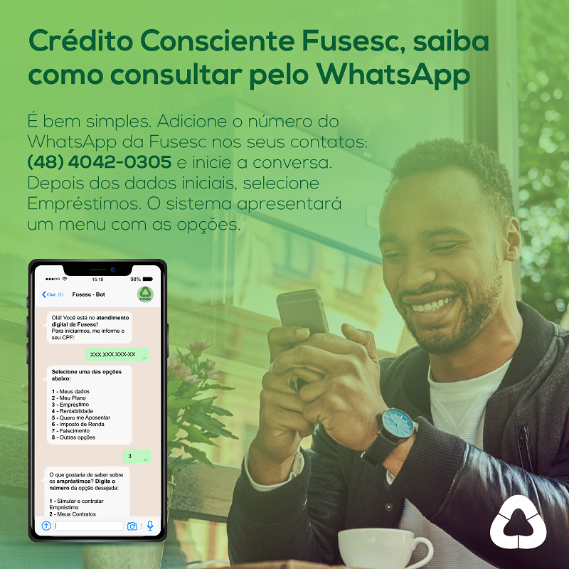 Para facilitar ainda mais o seu dia a dia, é possível consultar as informações sobre o empréstimo Crédito Consciente Fusesc pelo WhatsApp!