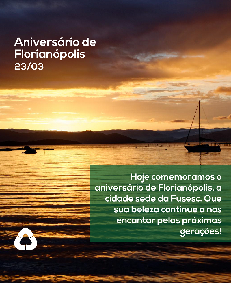 A Fusesc informa que amanhã (23/03) não haverá expediente devido ao feriado municipal de aniversário de Florianópolis/SC, cidade sede da Entidade. Nos demais dias, o atendimento segue em horário normal.
