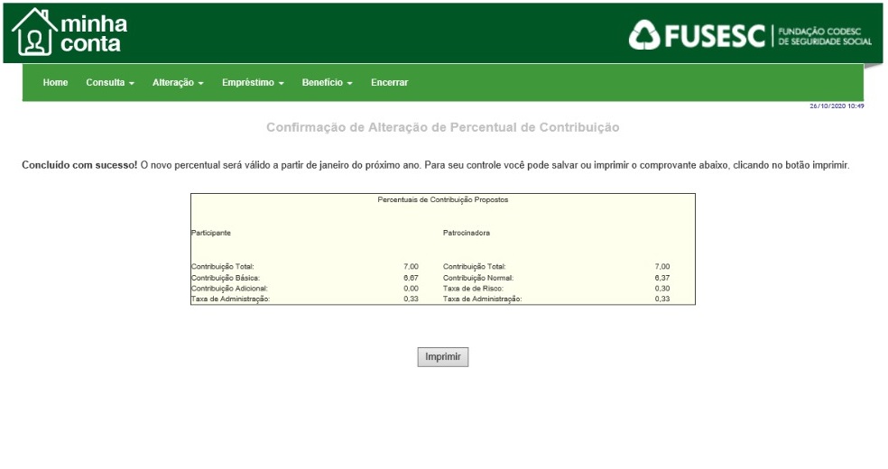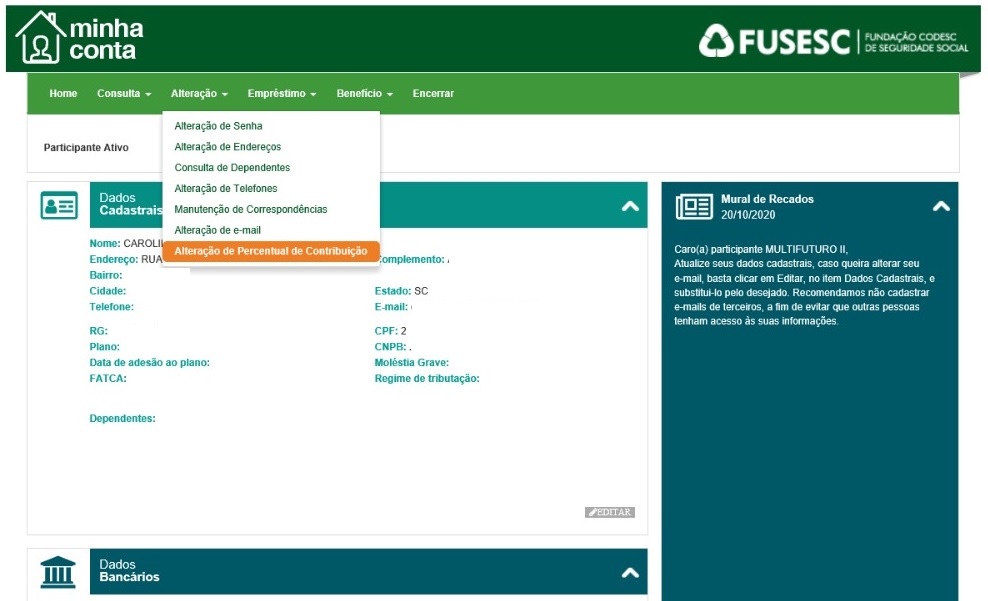Alteração de Percentual de Contribuição – se for Participante: