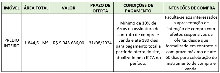 A oferta atende a Resolução CMN nº 4994/22, que determina que as entidades fechadas de previdência complementar tenham até 24/05/2030 para realizar a venda dos imóveis ou constituir Fundo de Investimento Imobiliário – FII para abrigá-los.
