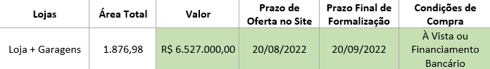 – Edifício Reflex: de 01 (uma) loja e 10 (dez) garagens do Edifício Reflex, ofertadas conjuntamente, situadas na Rua Tenente Silveira, 299, Bairro Centro, Florianópolis – SC, com área total de 1.876,9762 m², devidamente registradas no Cartório do 1º Ofício de Registro de Imóveis sob a matrícula nº 35.361, atualmente desocupadas.