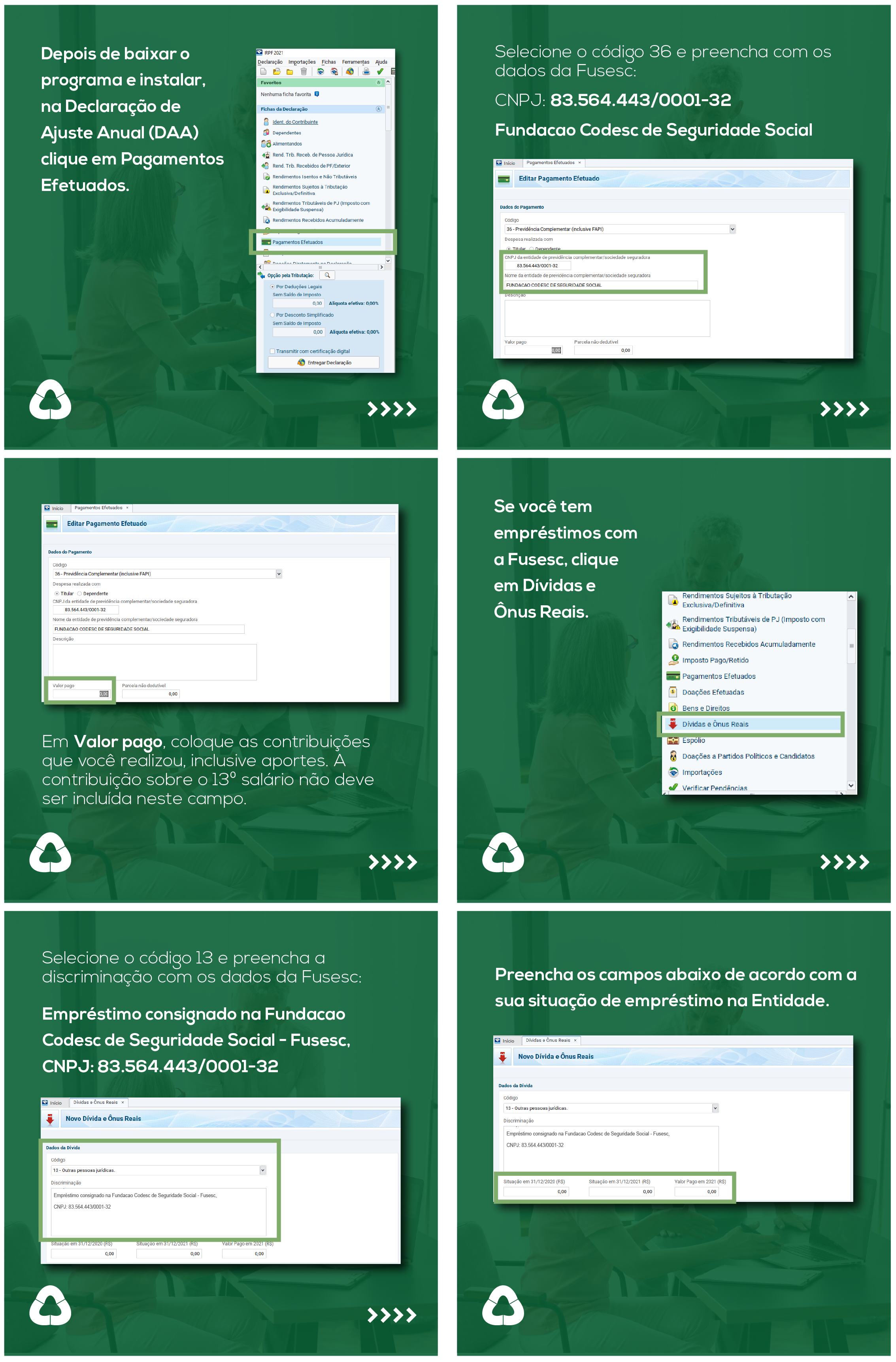 Para os Participantes Ativos, somente a empresa patrocinadora envia o Informe de Rendimentos, no qual já constam as contribuições efetuadas para o plano de benefício. Caso ainda não tenha recebido, entre em contato com a área de RH da empresa em que trabalha. Para verificar os valores de empréstimos contraídos e pagamentos efetuados no exercício de 2021, acesse a área de Autoatendimento do site com o CPF e senha e clique no menu superior em Consulta > Informe de Rendimentos de Empréstimo.