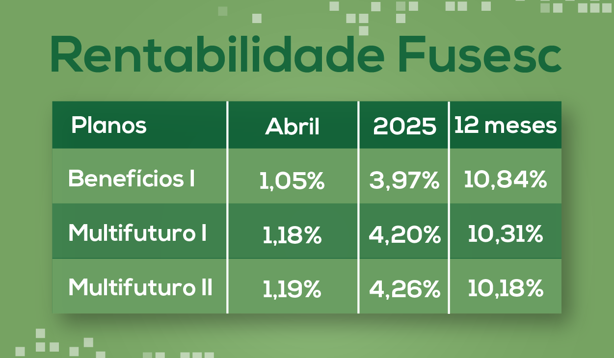 Além das Lâminas de Rentabilidade completas de cada Plano, você também pode conferir mensalmente no nosso podcast Fala Fusesc informações a respeito da rentabilidade dos planos, falando sobre os impactos do mercado financeiro no mês e, também, trazendo uma avaliação de forma mais ampla.